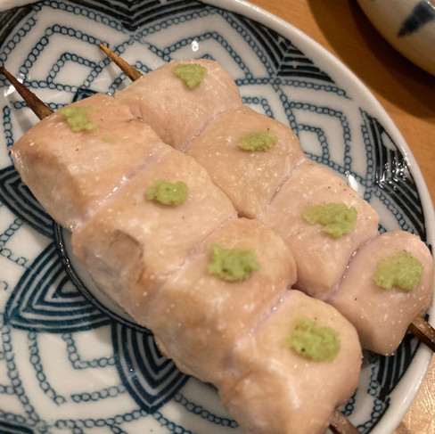 This place is literally 3 doors from our first Airbnb. It's a neighborhood spot with 10 seats around the chef and several tables in the back and upstairs. When we were there, the other 8 seats in front were filled with a father and son, a husband and wife, 2x 20-something women, and 2 x 30-something women--so a much different vibe than some of the places where only crowds of salarymen gather.