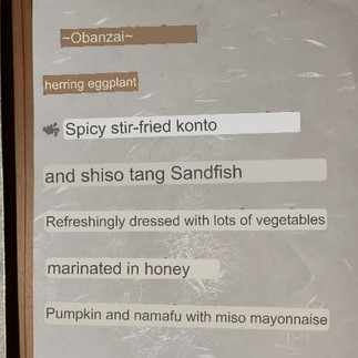 Type: Obanzai/izakaya--breakfast, lunch or dinner.