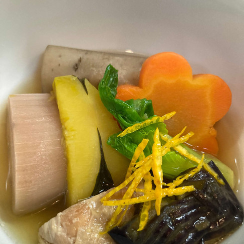 20 kinds of veg salad: amazing. Every fruit and veg perfectly tasting and prepped. Served with a dashi vinegar sauce and a mackerel dipping sauce 6/5