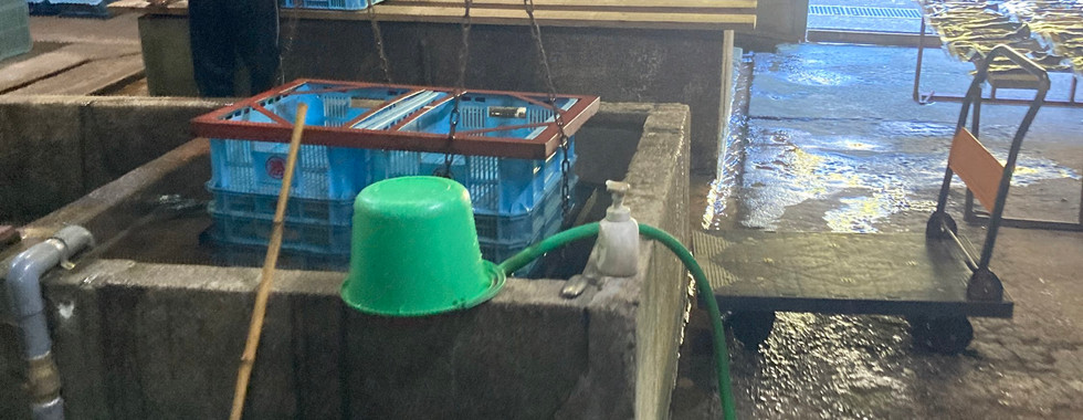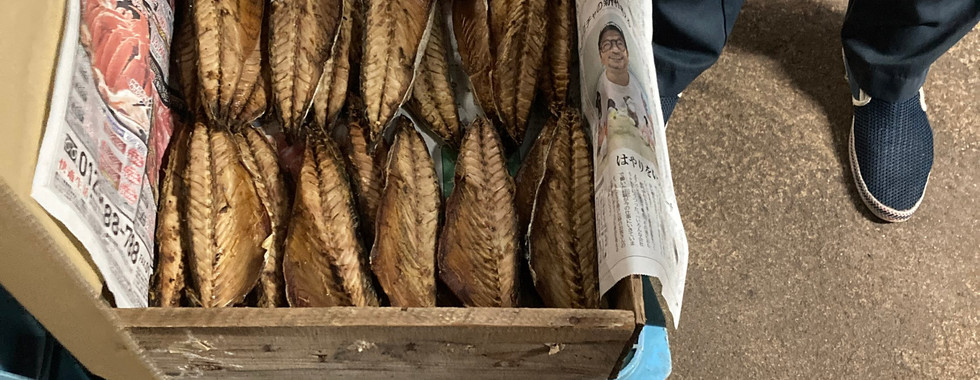 Near Isso beach, we visited a mackerel smoking factory (Marukatsu Fisheries) where they made saba-bushi and were treated to a tour! The guy in the office welcomed us and immediately started showing us some laminated pages that explained the factory process, and showed us the fish in production. We bought smoked mackerel for 500 yen and dried smoked mackerel for 700 yen