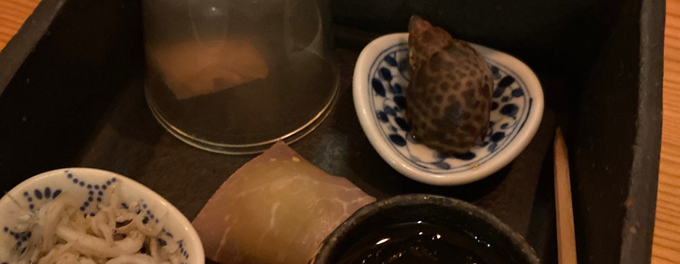 Karasumi (salted and sun-dried mullet roe) : a special delicacy. It was slightly chewy, not too fishy or salty though both those flavors are present. Traditionally eaten (and really good with) sake.